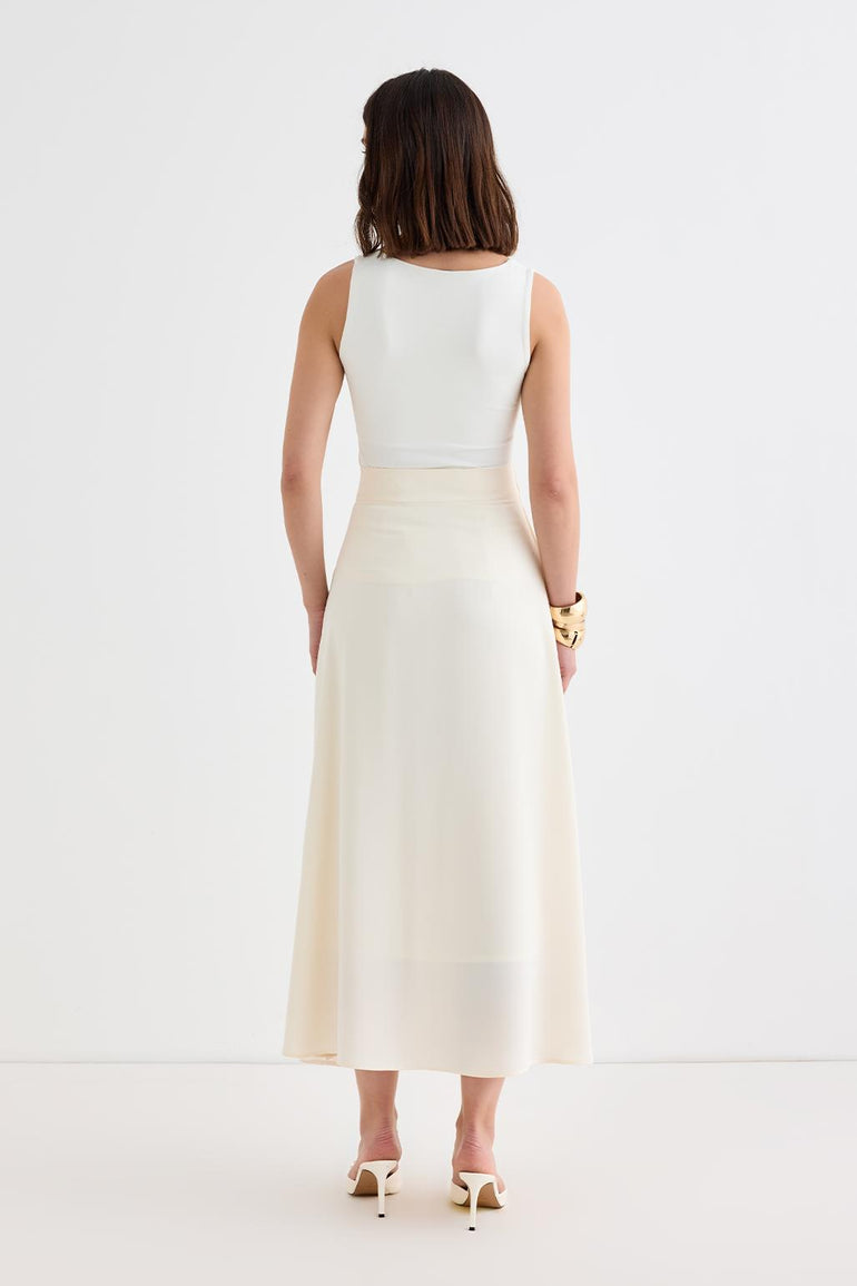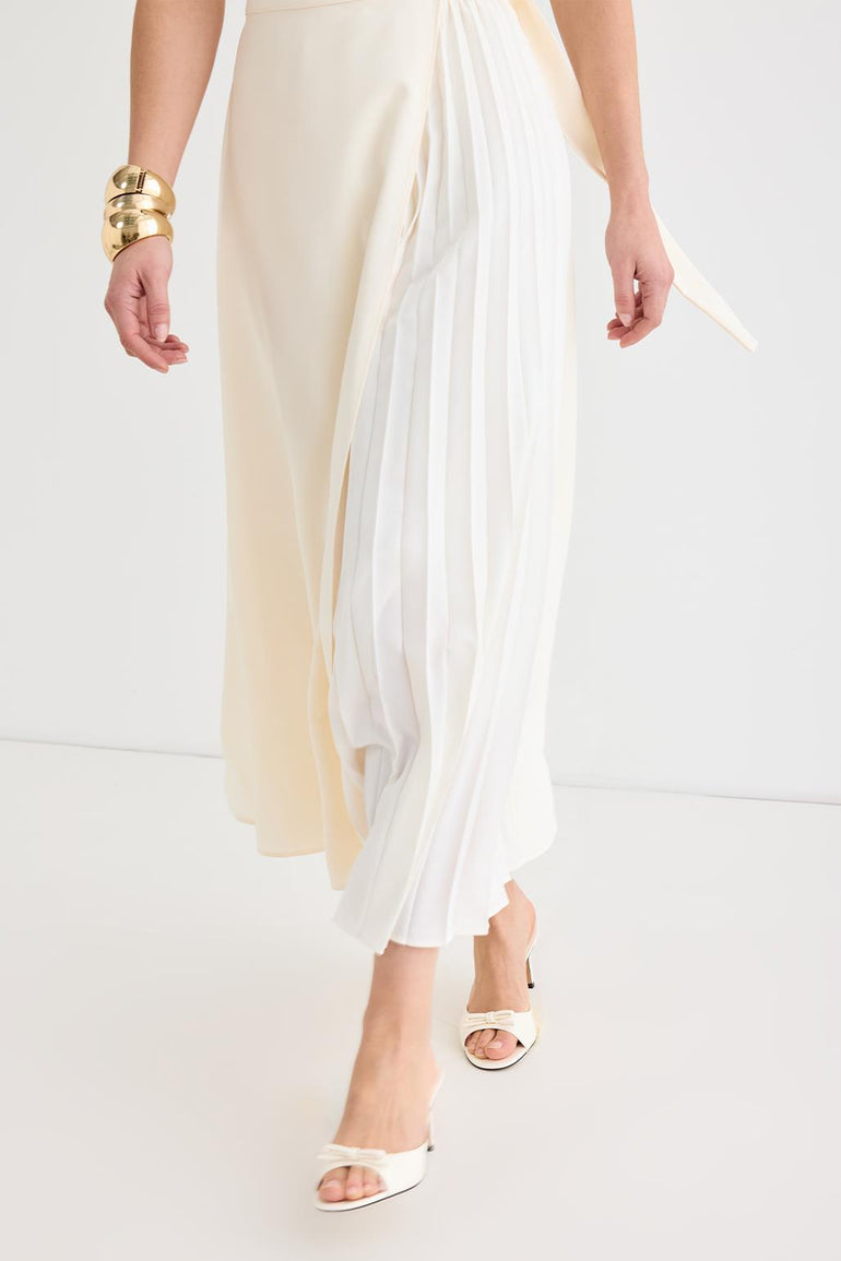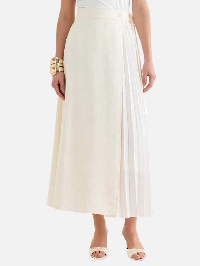 Rita Pleated Wrap Skirt Ecru