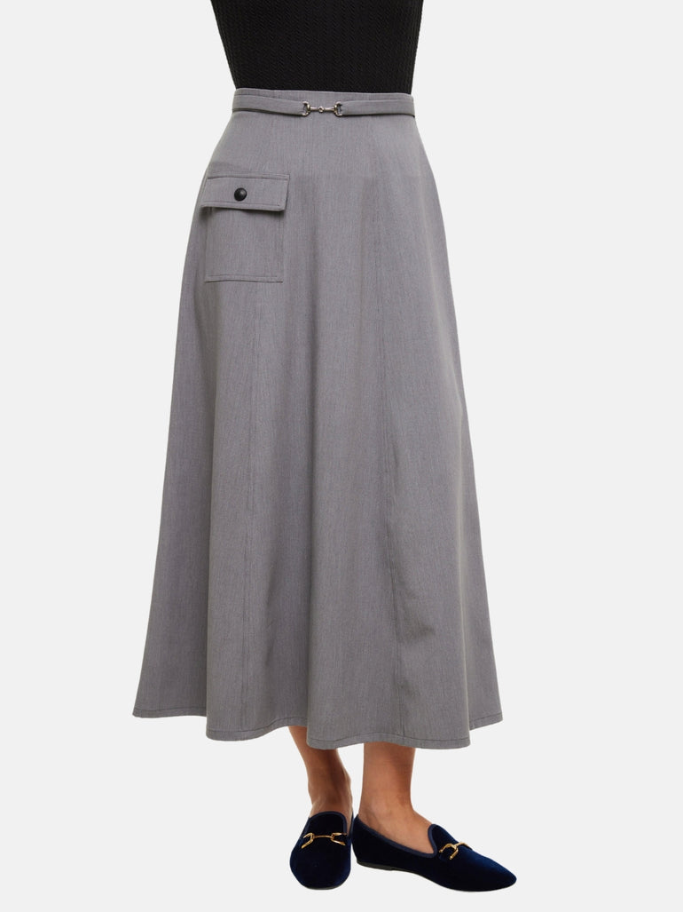 The Diana Skirt is a timeless and elegant design, perfect for both casual and professional settings. This A- line skirt features a subtle front pocket detail with a snap closure, adding both style and functionality. The fabric offers a comfortable stretch due to its blend of polyester, rayon, and spandex, ensuring ease of movement. Available in four classic colors—Light Blue, Denim Blue, Dark Gray & Light Gray—the Diana Skirt provides versatility for any wardrobe