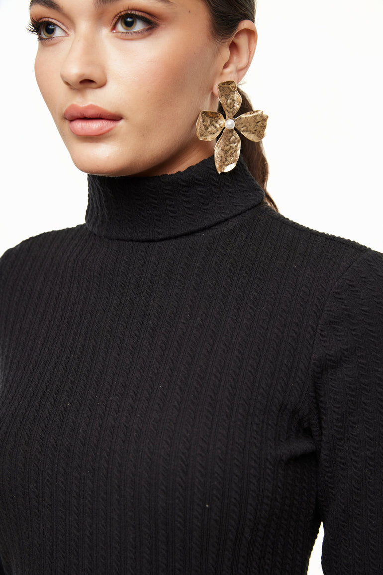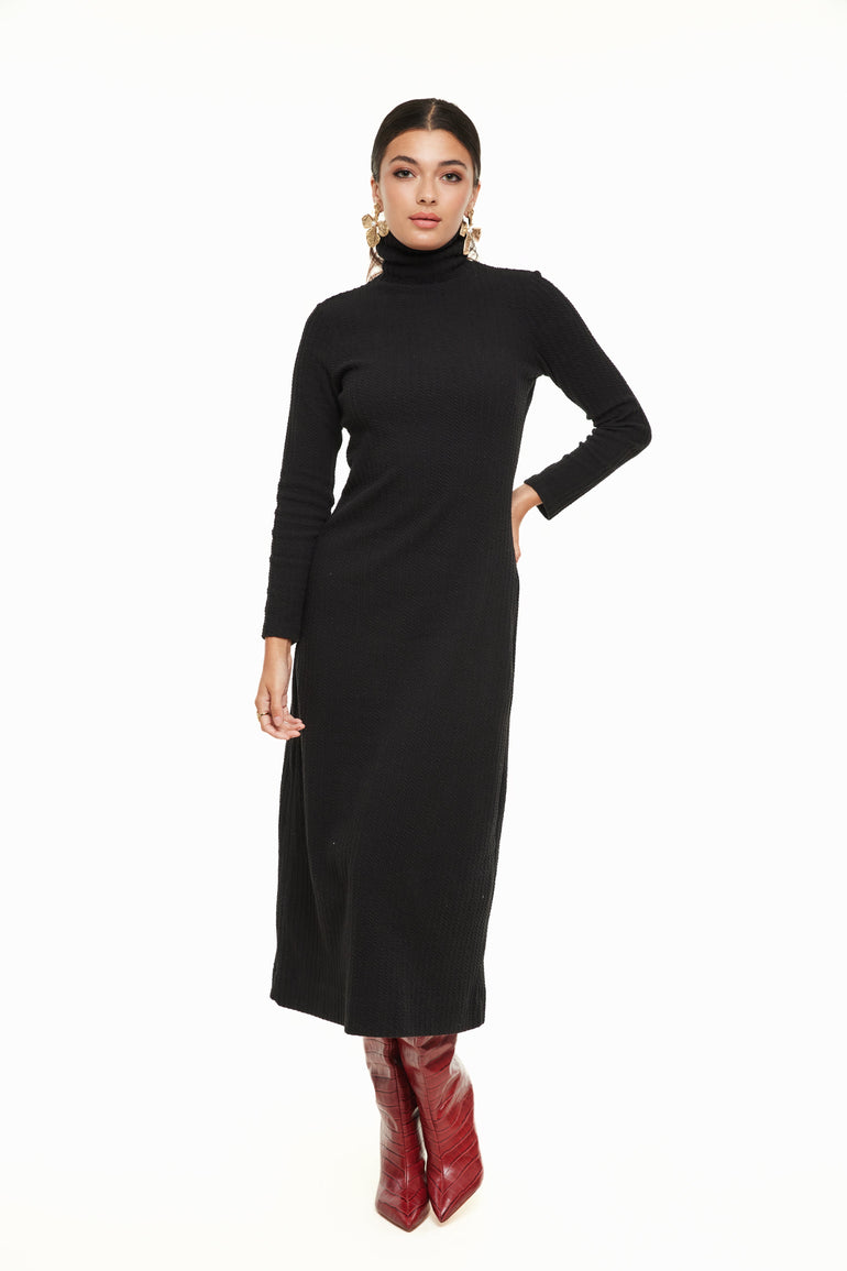 CABLE KNIT TURTLENECK DRESS