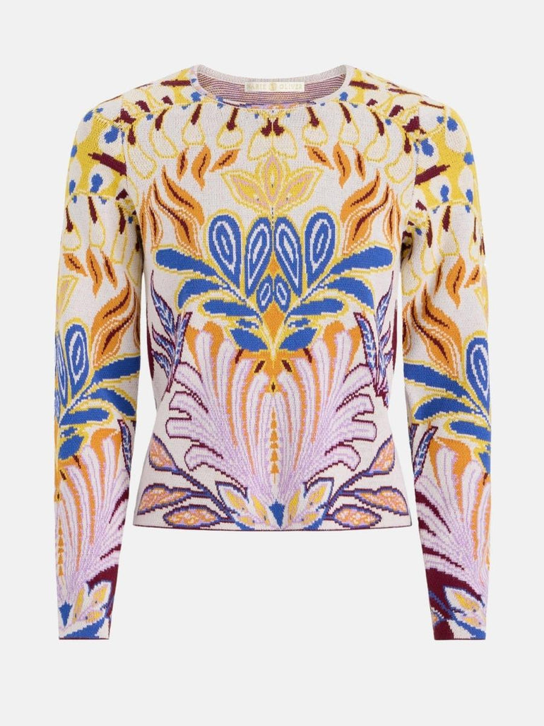 A modern essential with a bold twist, this long-sleeve crewneck is cut in a sleek jacquard knit featuring our dramatic Hydrofleur print. Designed with a close fit through the body and sleeves, it slips on with ease for a streamlined silhouette. Style it solo or pair with the matching Janis Skirt for a striking head-to-toe look.