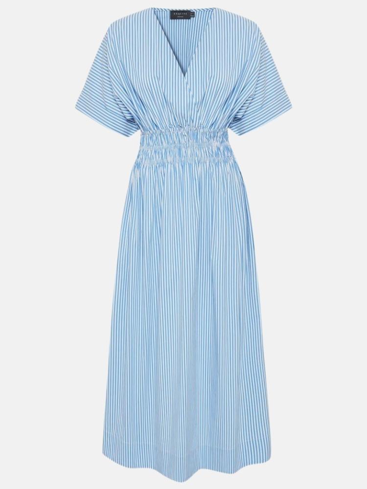 Presley Shirred Striped Dress in Blue