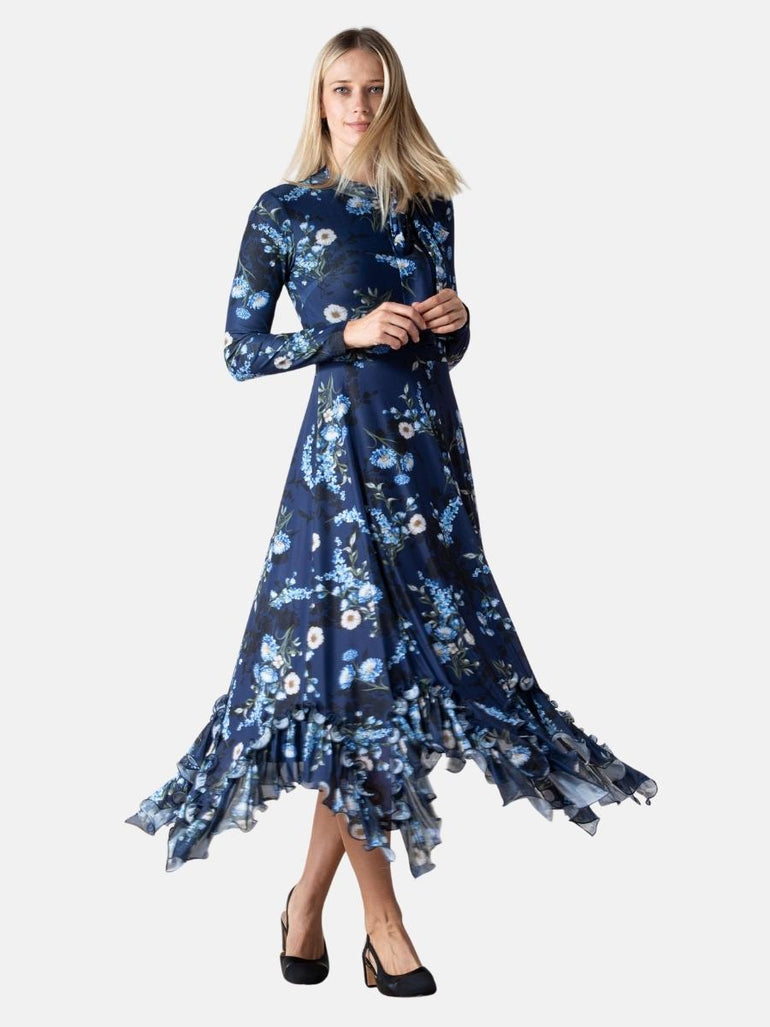 Amalthea Ruffle Hem Maxi Dress in Blue