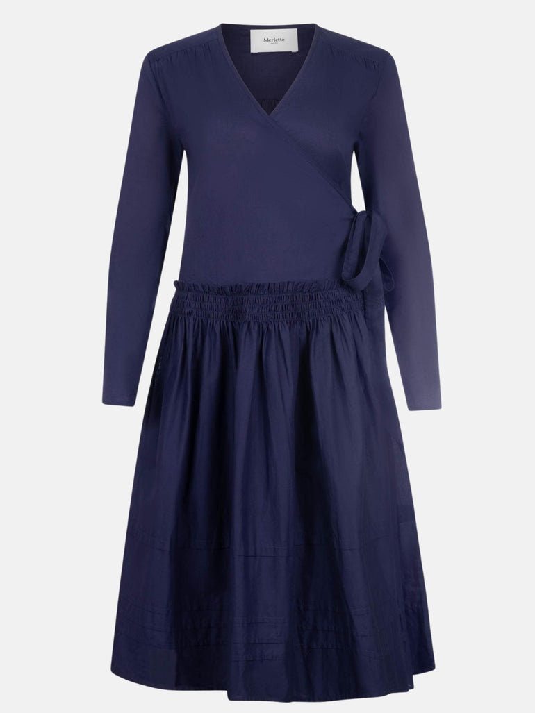 The LILAS Dress is a masterpiece of craftsmanship and modern design. Rendered in breathable 100% Pima Cotton Lawn, this midi-length wrap dress offers a tailored elegance with its inner button and outer tie closure—ensuring a perfect fit. The drop waist, adorned with intricate smocking and a raw-edge ruffle, creates a flattering silhouette that feels both contemporary and feminine. Pintucks embellish the top hem of the flowing skirt, adding texture and movement, while its long, slim sleeves maintain a sleek and polished profile. Thoughtful details like functional side pockets enhance the practicality of this design, making it an easy choice for day-to-night wear.