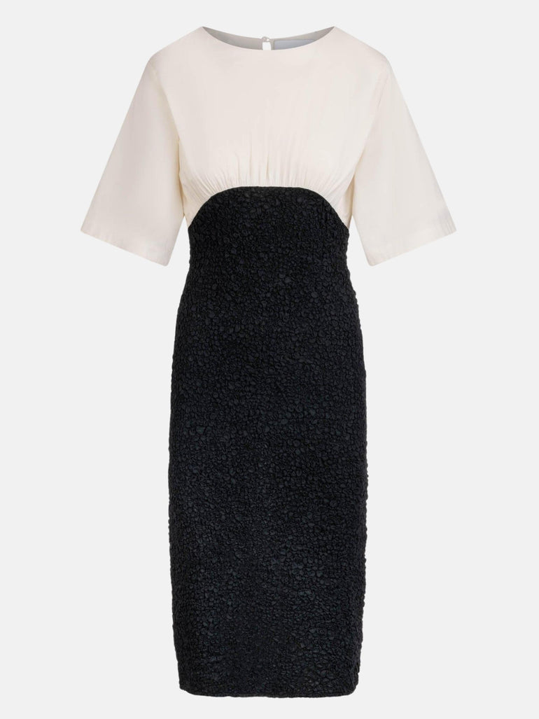 Solene Structured Empire Waist Dress in Black Opaline Combo