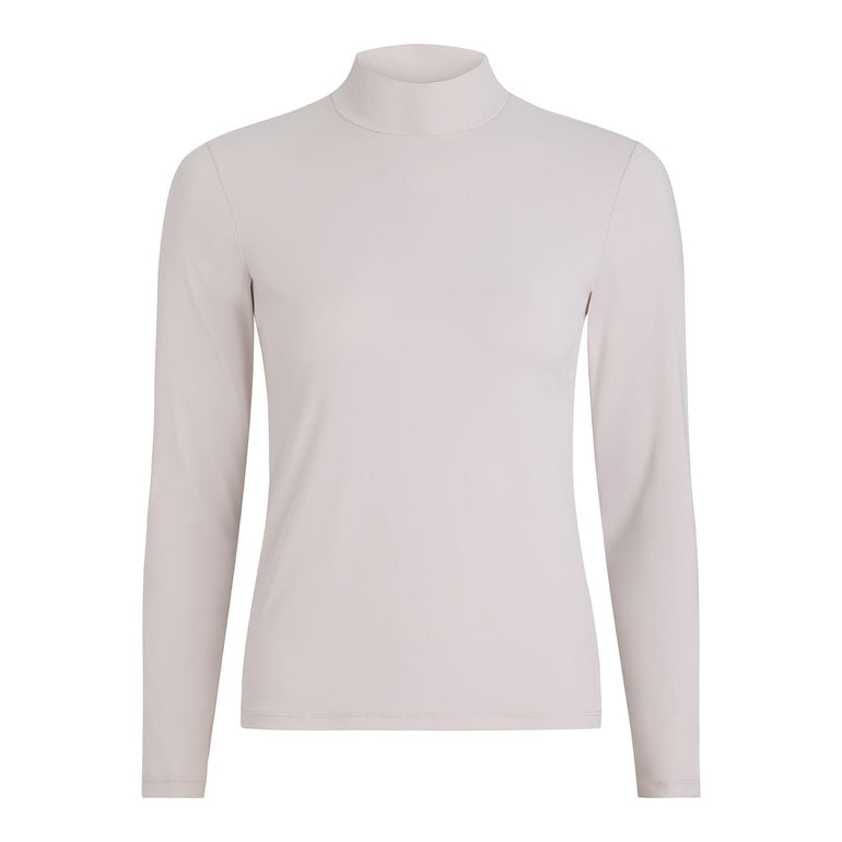 - The Ava Top is a sleek, form-fitting mock neck crafted from a smooth microfiber jersey with four-way stretch.