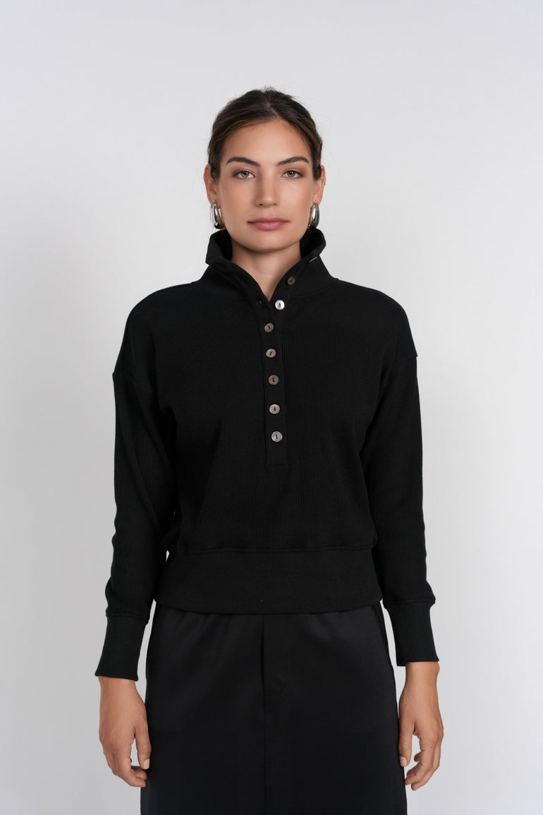 - The Sandy Top is a refined take on a classic Henley, crafted from a soft waffle-knit fabric that offers texture and comfort in equal measure.