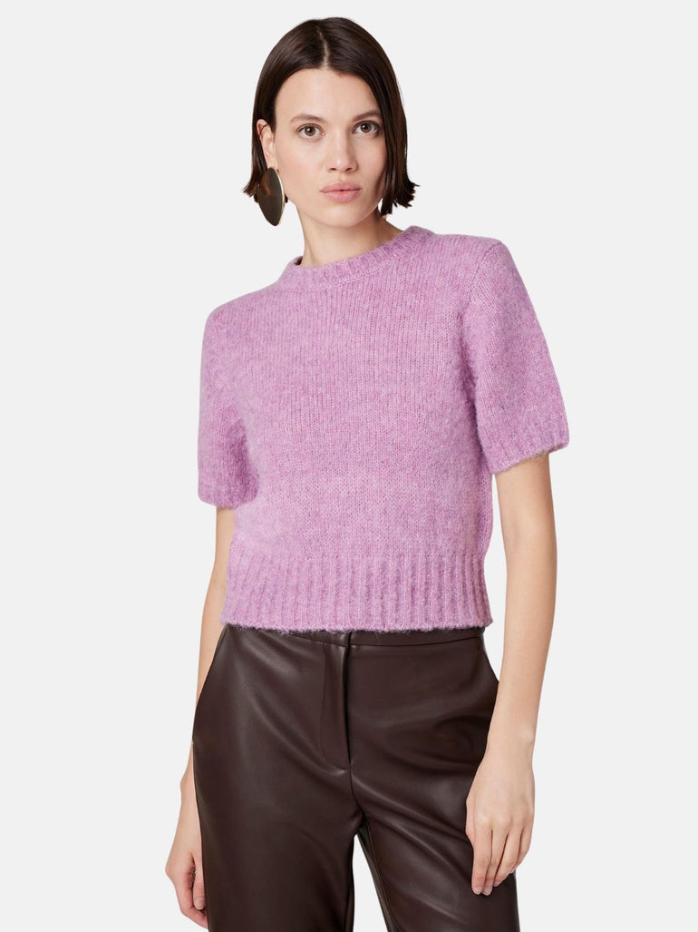 Carson Short Sleeve Sweater – Soft, Cropped Knit with Ribbed Detailing