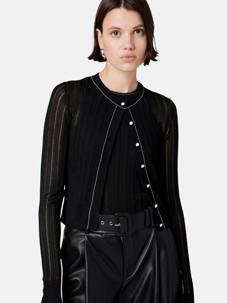 Crosby Contrast Tipping Cardigan in Black