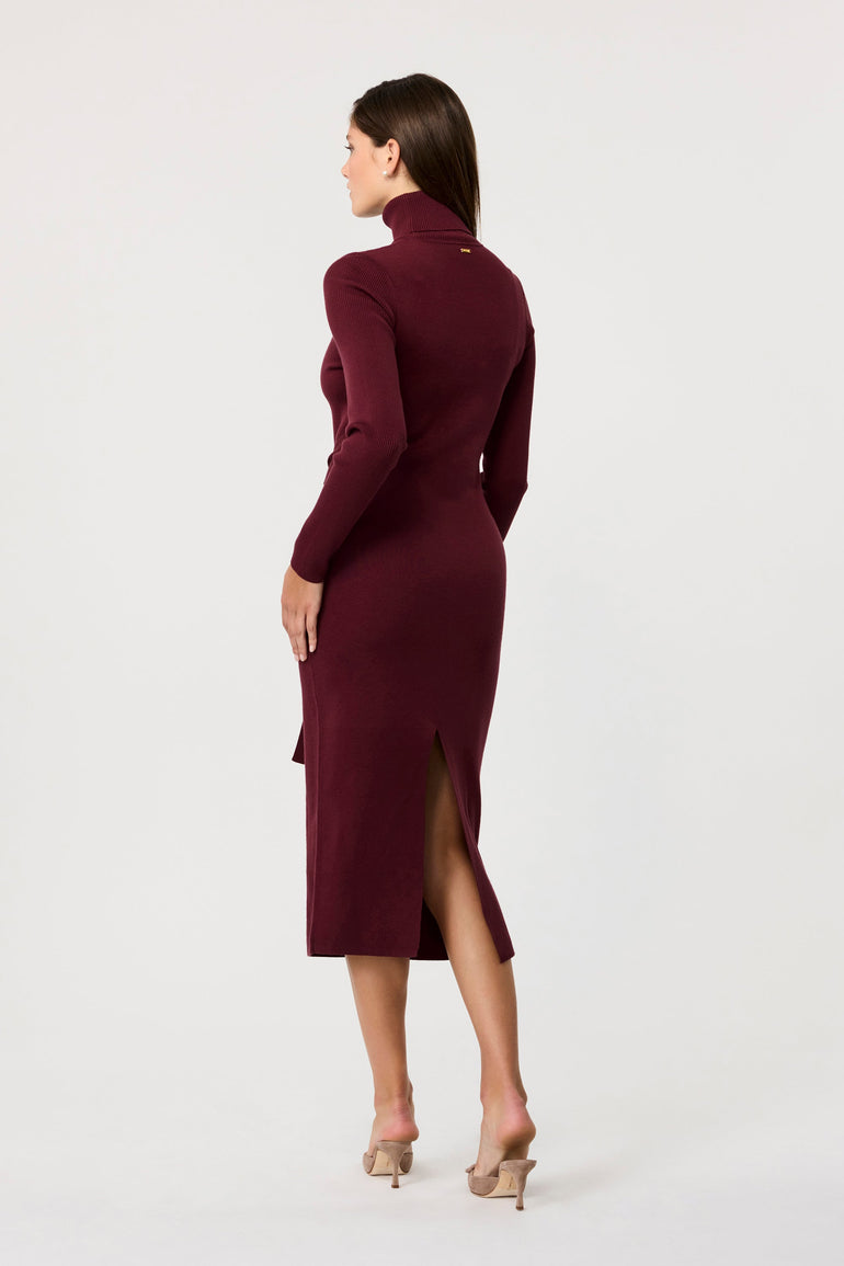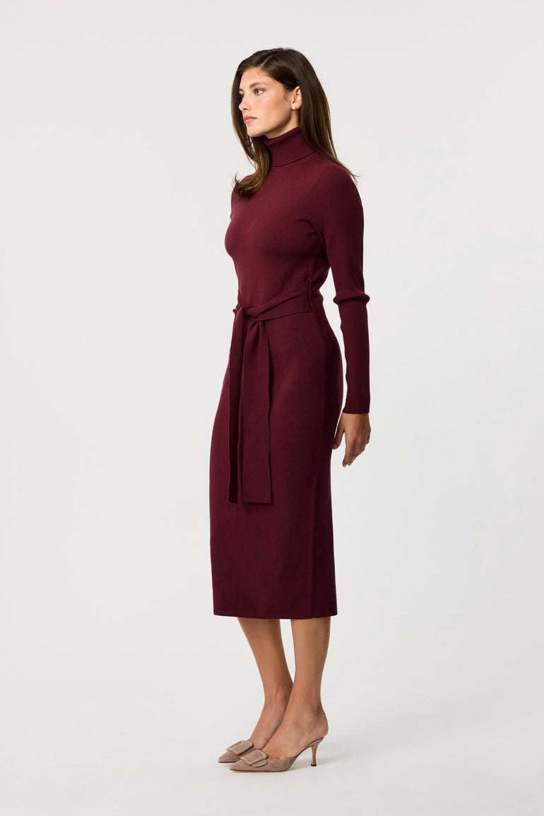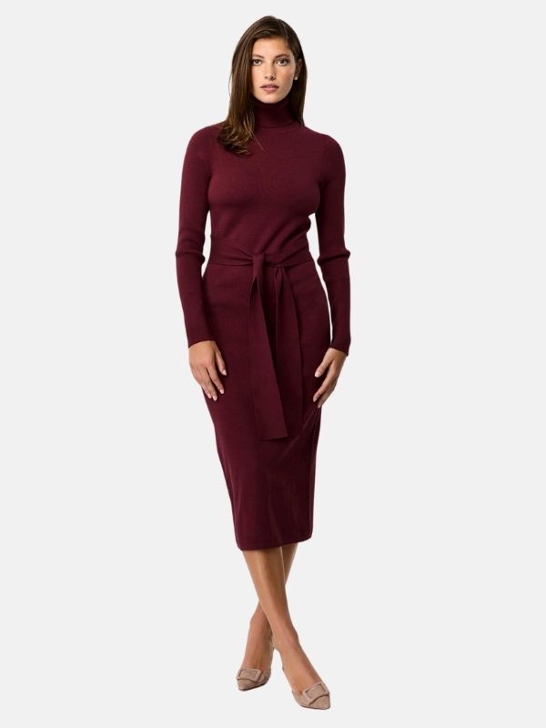 Introducing the Logan Long Sleeve Turtleneck Tie Front Dress, perfect for the sophisticated woman. This midi dress features a turtle neck and tie front, and the contour fabric provides a flattering silhouette, while the back slit allows for effortless movement and a hint of allure. Ideal for professional settings and beyond, this dress will keep you warm and comfortable throughout your day.