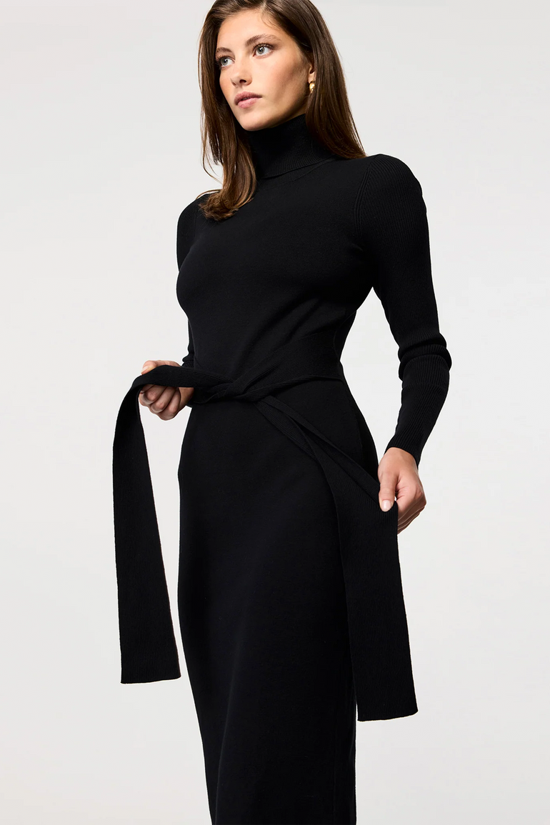 Logan Long Sleeve Turtleneck Tie Front Dress