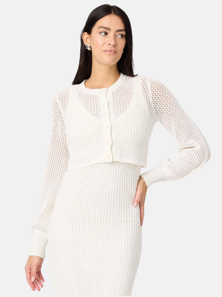 Breezy, chic, and effortlessly stylish – the Tori Crochet Blouson Sleeve Cardigan is back for summer layering. Crafted for maximum comfort and versatility, this cropped cardigan features delicate crochet detailing and elegant blouson sleeves that add a feminine, sophisticated touch.