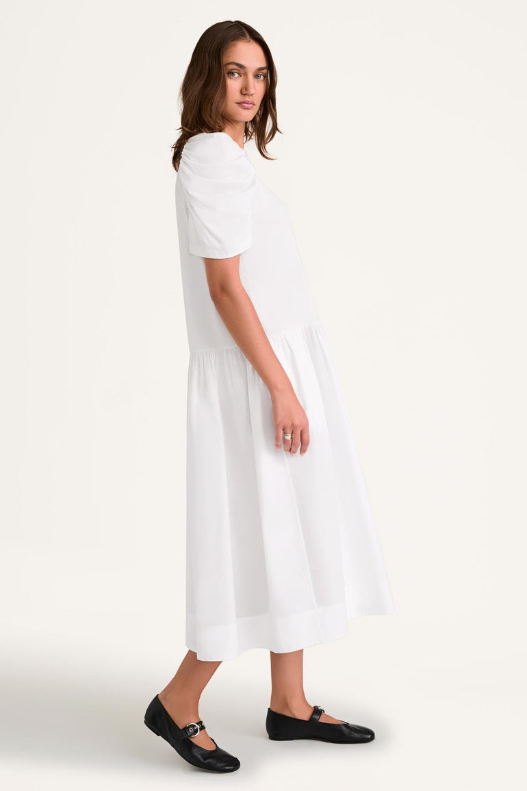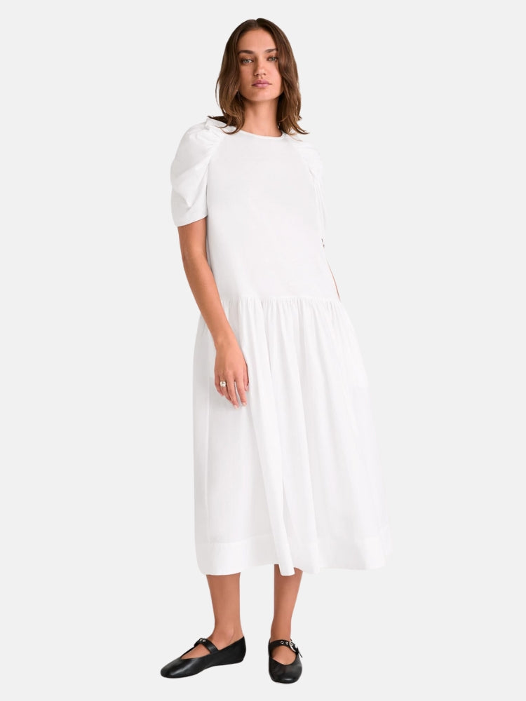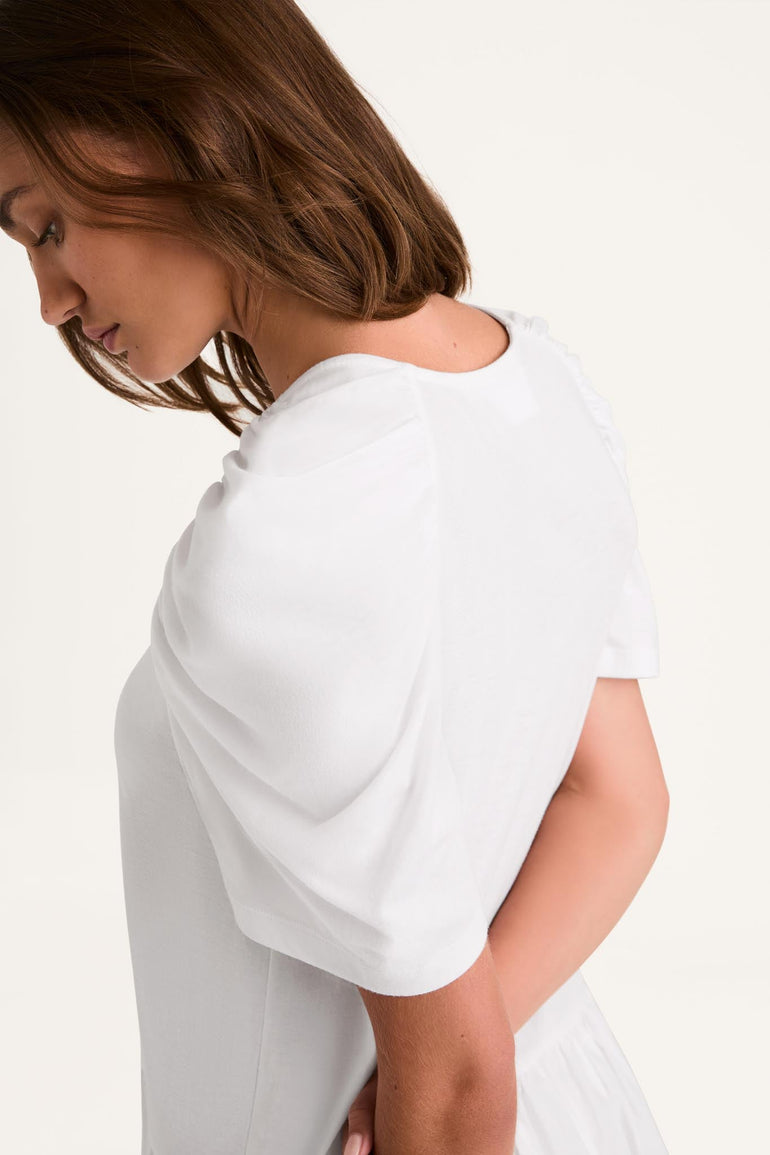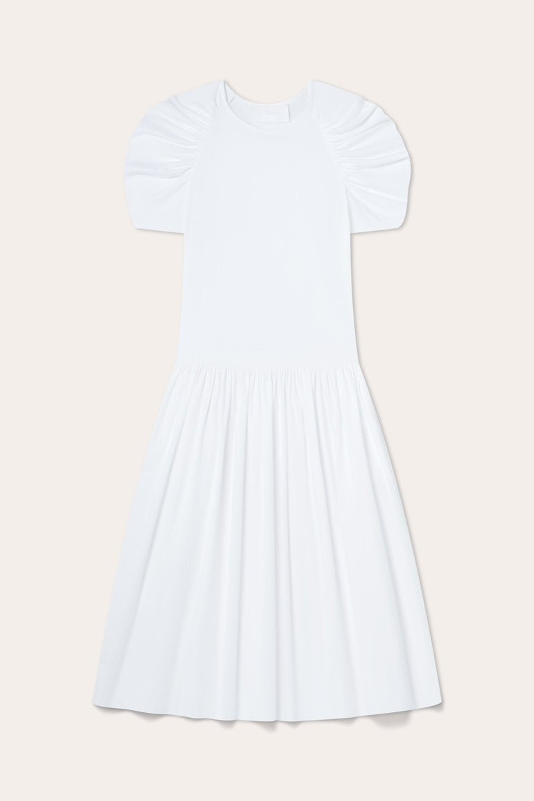 Merlette's first dress to be crafted in cotton jersey, the ARCANE is an easeful everyday essential. It has beautifully ruched sleeves and a gathered and slightly flared skirt that falls to just below the knee. Also available in Black.