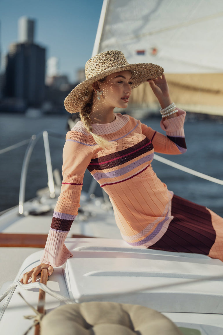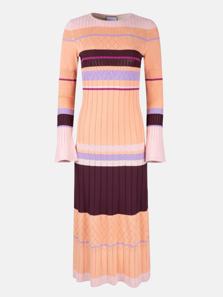 Crafted with luxurious sunset-toned knit fabric, this dress exudes sophistication and exclusivity. Perfect for any occasion, its intricate design and vibrant color will make you stand out.