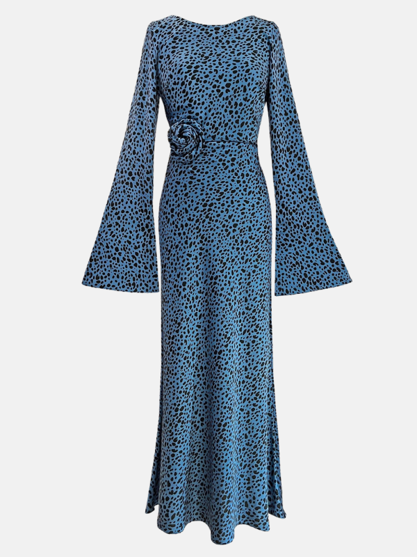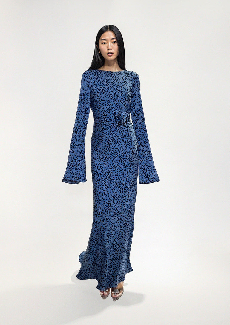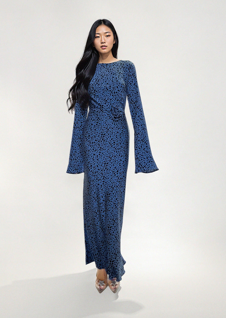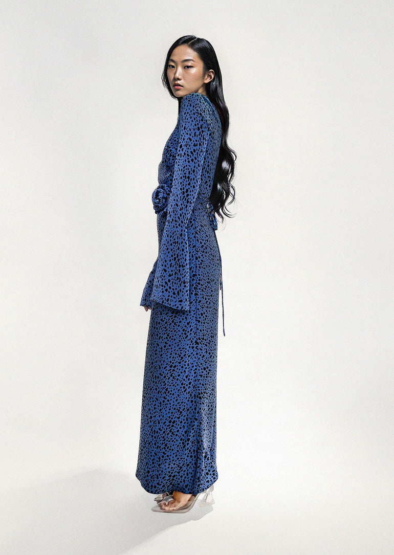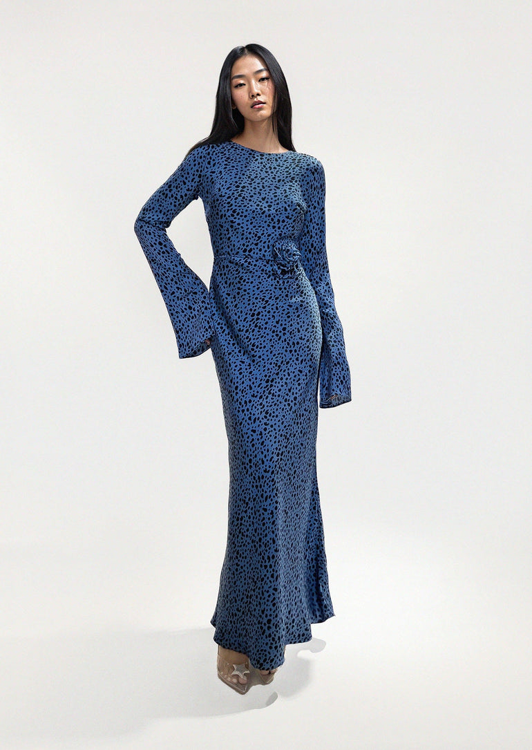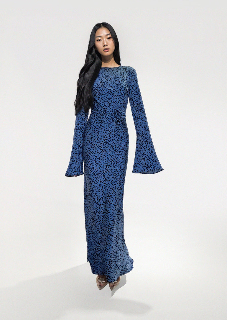 Kyra Bias Maxi Dress in Blue Dalmatian