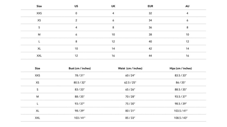 We recommend sizing up if you have a fuller bust or if you're between sizes.
