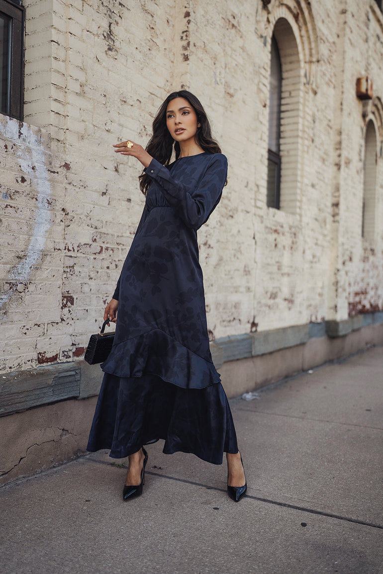 Crafted with a high-waist silhouette, the High-Waist Ruffle Dress features ruffle detailing and a flattering, feminine design.