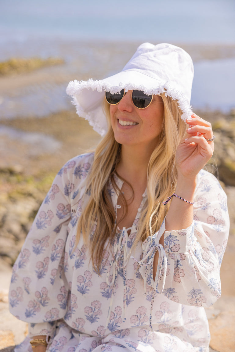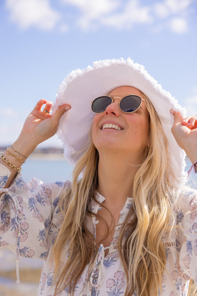 Our canvas hat is both classic and trendy. It has built in SPF protection and easily packable in your luggage! Keep it simple with solid natural and white or choose from stripes in black and navy.