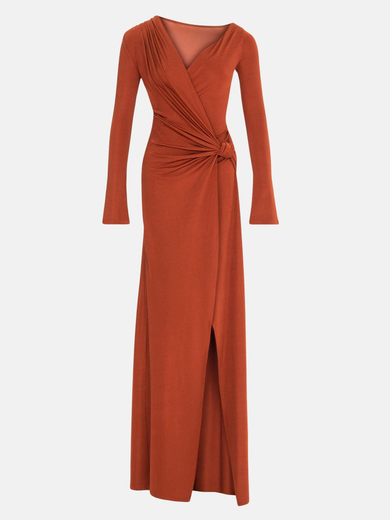 Cinnamon Knot Detail Slit Maxi Dress in Cinnamon