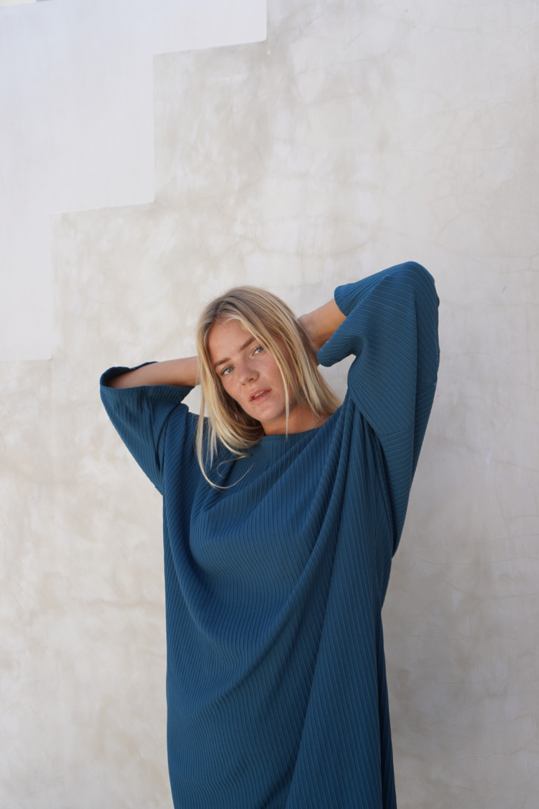 The Eva dress is so effortless to style. Designed in an oversized T-shirt shape, it's made from rib-jersey and has a comfortable and loose silhouette. Wear it with sneakers, flat sandals or even heels.