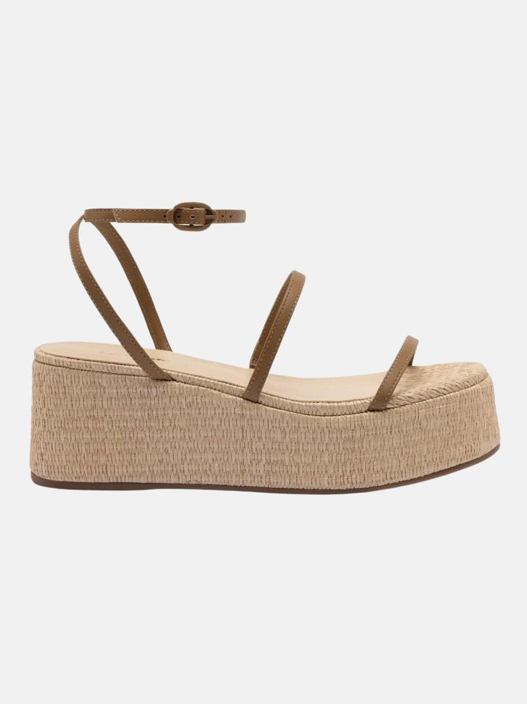 Gio Flatform Sandal In Natural Raffia and Hazelnut Trimming