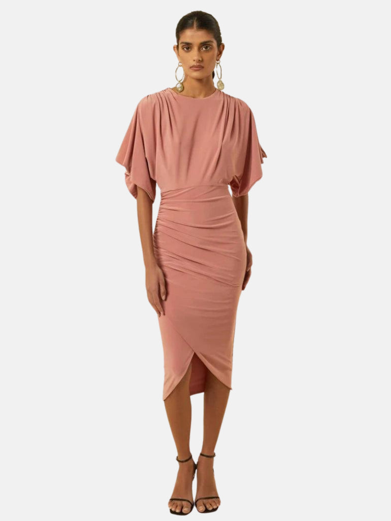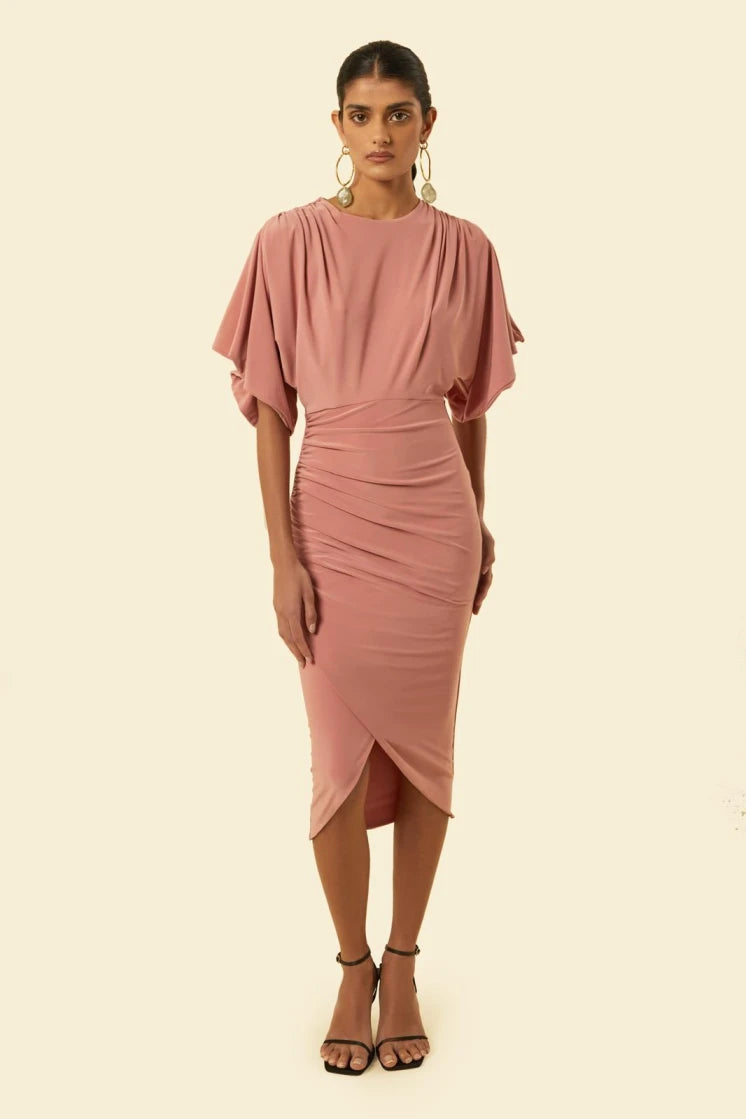 Leilani Wrap Skirt Midi Dress in Rose Tan
